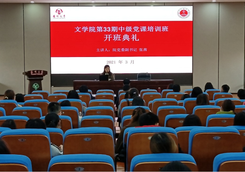 3月13日,文学院分党校举行第33期中级党校培训班开班典礼。院党委副书记张茜主持开班典礼,并作开班动员讲话。校关工委理论宣讲组顾瑞漒教授出席并作党课第一讲。