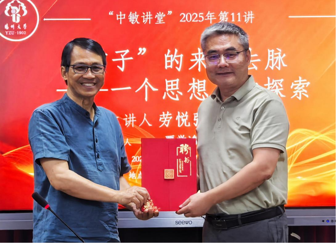 5月30日下午,新加坡国立大学中文系荣休教授、荷兰莱顿大学沼田佛学研究中心客座教授、马来西亚拉曼大学中华研究院客卿教授劳悦强先生来到扬大文学院,接过院长王定勇教授为他颁发的聘书,正式受聘为文学院兼职教授。随后,劳教授为师生作了题为《“君子”的来龙去脉——一个思想史的探索》的学术报告。