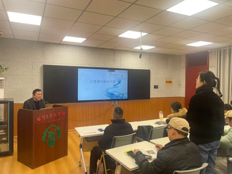 3月16日上午,我院“中敏讲堂”在一楼智慧教室开讲。讲座以“汪曾祺与扬州文化”为题,特邀第五届鲁迅文学奖得主、著名评论家及“汪学”倡导者王干主讲。王干系统梳理了汪曾祺文学创作与其书画、诗文美学之间的深度滋养关系,深入剖析了汪曾祺文学创作与扬州地域文化之间千丝万缕的联系,为听众理解汪曾祺作品深厚的文化底蕴及“扬州八怪”的现代意义提供了新的视角。本次讲座由我院黄诚教授主持,众多师生、业内人士、校外文学爱好者到场聆听。
