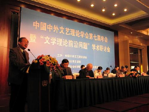 中国中外文艺理论学会会长钱中文教授在开幕式上发言