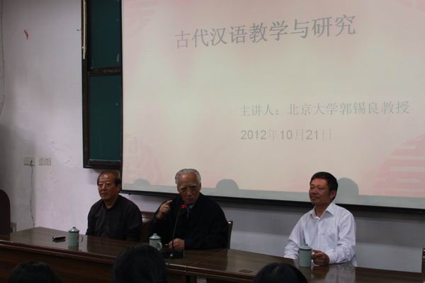 多年来,我院《古代汉语》课一直使用郭锡良教授主编的教材。平时读其书,今日见其人。许多同学早早赶来,十分珍惜这次与著名学者亲密接触的学习机会。