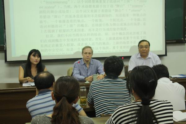 世界著名美学家、美国亚特兰大大学教授理查德·舒斯特曼先生6月12日晚7点在文学院报告厅为文学院师生作了《作为戏剧化的艺术》的精彩学术报告,报告会由姚文放教授主持。理查德·舒斯特曼先生从“艺术”的涵义入手,史论结合、深入浅出地分析了“戏剧化”、“舞台”、“框架”、“激情”等核心概念与“艺术”的内在关联,生动阐释了“艺术”的丰厚内涵,并且与文学院的博硕士生进行了热烈的互动,解答了大家对“身体美学”的种种疑惑。