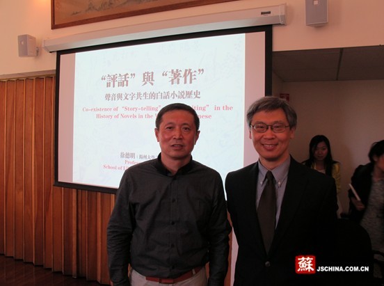 5月3号,我院徐德明教授受哈佛大学东亚语言及文明系讲座教授王德威邀请,在哈佛大学东亚系作了《“评话”与“著作”——声音与文字共生的白话小说历史》的讲演。他认为研究从宋代以降的中国白话小说仅仅根据记录整理的书面文本是不够的,必须注意声音文本。面对无法再现古代声音的尴尬,徐德明从扬州评话这个话本小说的千年“活化石”入手,提出对包括鲁迅《中国小说史略》的补充与商榷。演讲还认为现代的扬州评话应该被视为中国现代文学的一个部分。讲演得到哈佛大学教授、国际汉学界权威王德威的高度赞许,他表示:演讲言之有物,更重要的是有新的见解,在座的人都听得十分入迷。