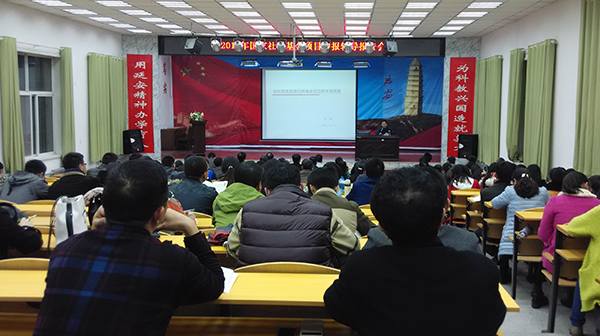 古风教授结合自己多年申报国家社科基金项目及参与项目通讯评审的经验,从设立国家社科基金的基本目的、近年来国家社科基金的新变化、申报国家社科基金的难度、在申报工作上下功夫和申报常见问题分析等方面进行了详细讲解。他还针对国家社科基金项目选题、论证及申报注意事项等细节,通过生动翔实的案例分析、精确细致的数据统计,就如何提高国家社科基金的申报质量为我校教师进行了专题辅导。同时,古风教授也就延安大学申报国家社科基金的现状提出了建设性意见和建议。