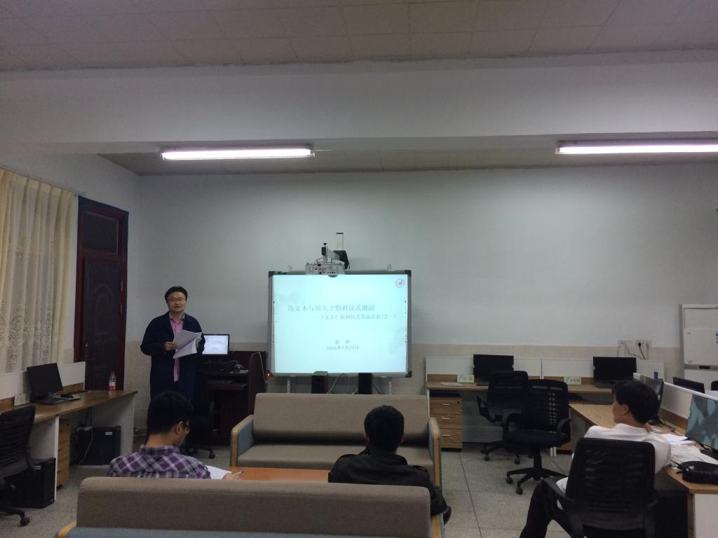 张强博士以《诗经·大雅·文王》为研究对象,钩沉史料,博引经文。对《文王》这一文本中的原初仪式形态进行了“历史-文本”双重意义的还原。其颇具独创性的问题意识和扎实的学问功底赢得了听众们的一致好评。一个小时的报告结束后,大家针对张强博士的报告进行了热烈的讨论。