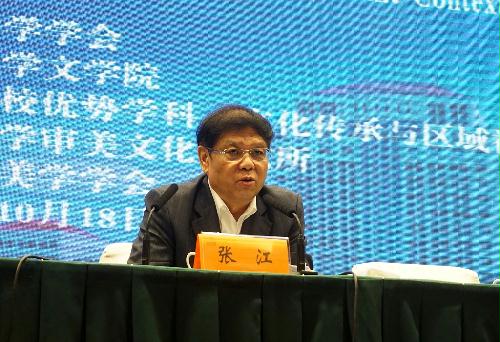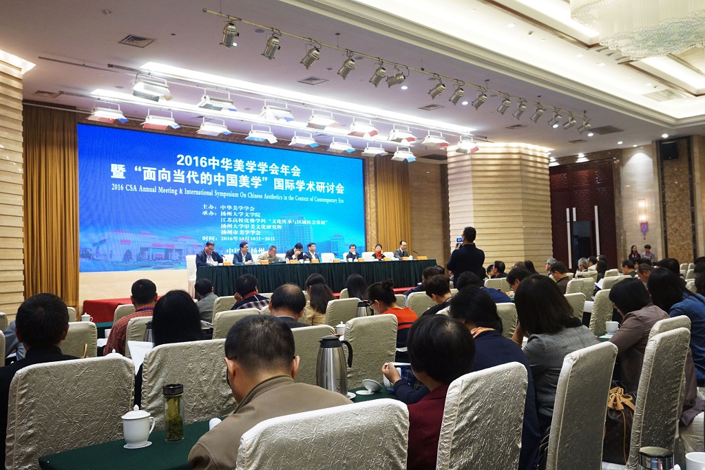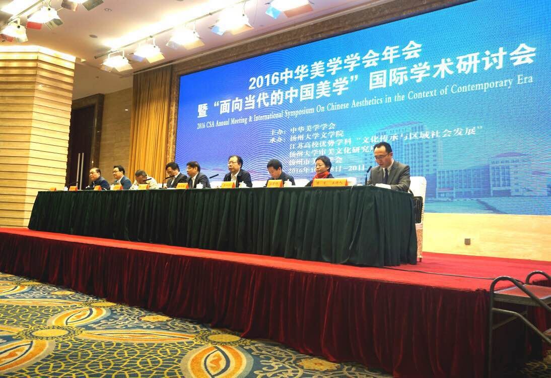 2016年中华美学学会年会暨“面向当代的中国美学”国际学术研讨会在扬州召开 10月19日, 2016年中华美学学会年会暨“面向当代的中国美学”国际学术研讨会在扬州会议中心隆重召开,此次会议由中华美学学会主办,扬州大学文学院、江苏高校优势学科“文化传承与区域社会发展”、扬州大学审美文化研究所、扬州市美学学会承办。中国社会科学院党组成员、副院长张江教授,中华美学学会会长、国际美学协会主席、中国社会科学院文学研究所高建平研究员,我校党委书记姚冠新教授,副校长陈亚平教授,江苏高校优势学科“文化传承与区域社会发展”负责人姚文放教授,来自德国卡塞尔大学、日本东京大学、韩国首尔大学、北京大学、南京大学、北京师范大学、中国人民大学、中国社会科学院和全国各高校从事美学研究的专家学者共计200余人参加了会议,文学院院长陈军教授主持开幕式,文学院党委书记顾松明出席开幕式。