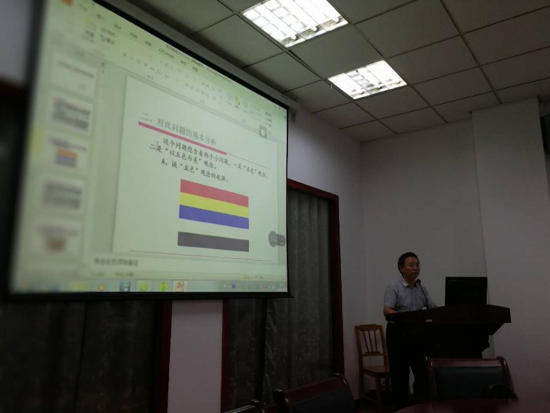 我院古风教授应邀参加活动,作了题为《“以五色为美”的原初审美观念探源》的报告。他主要讲了三个问题:首先,他从学术前沿出发提出问题,并指出了研究此问题的重要性和必要性。其次,他结合大量的物证和文献资料,分析论证了红、黑、黄、白、蓝(青)等“五色”观念和“以五色为美”观念的形成时间及其原因。他认为,“五色”观念形成于夏代,是史前彩陶用色经验的总结。“以五色为美”观念形成于春秋战国时期,有大量的物证和文献记载可以证明。最后,他谈了“以五色为美”观念对于后世的影响。战国以降,随着“五行说”的盛行,“五色”还与“五行”、“五时”、“五方”、“五味”、“五音”、“五脏”等相匹配,构成了一个五色斑斓的审美文化网络。后来,“五色为美”观念与时俱进,对于政治、民俗、生活、文学和艺术等都有重要的影响。诸如五色旗、五色徽、五色线、五色饭、五色水饺、五色面条、五色汤圆、五色笔和五色年画等。
