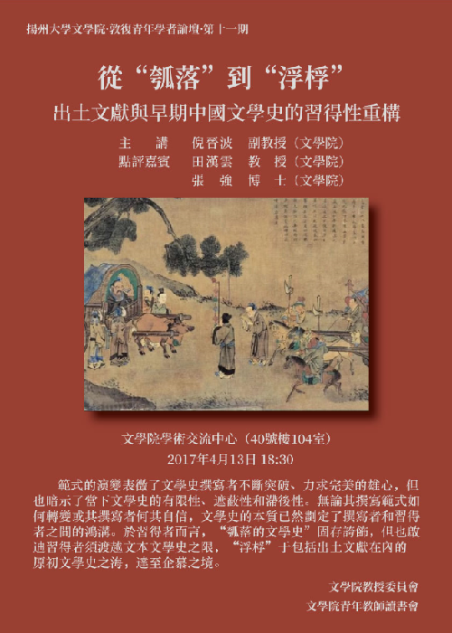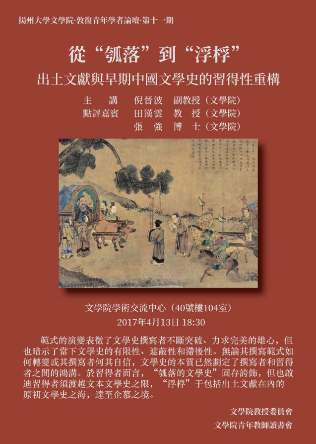 揚州大學文學院敦復青年學者論壇《從“瓠落”到“浮桴”出土文獻與早期中國文學史的習得性重構》(提綱)