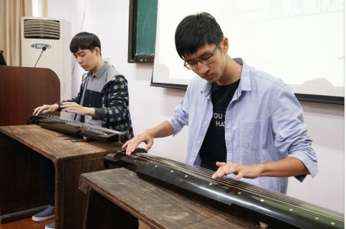 随后,杨逸心、孙妤同学款款登场,带来《书简》古典舞表演。磅礴的音乐,曼妙的舞姿,将速度的力量与古风的柔美结合,展现出不一样的古典美。李昀昊、李南同学共同演绎《神人畅》,翩翩君子弄琴弦,乐音清幽而纯净、质朴且悠扬。
