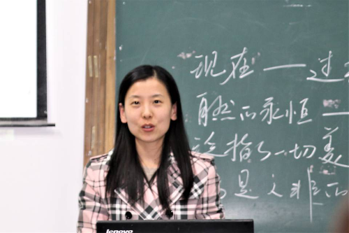 赛后,评委老师依据教学态度、教学内容、教学方法、教学效果为选手依次打分,并做了精彩的总结评点。A赛场,梅老师对选手们认真的参赛态度、落落大方的台风以及流畅的语言表达进行了表扬,同时也指出选手们普遍存在的板书不够精炼、时间观念薄弱等问题。她多次强调演课一定要做到“目中有人”,并向选手们传授了十条宝贵的演课经验。随后班老师从“准确用词”这一角度进行了总结。B赛场,龚老师首先肯定了选手们的比赛表现,赞扬了大家授课时的一些优点,同时也指出其不足之处在于有的参赛选手无板书或者板书的逻辑性不强,不能突出教学的重点。郑老师则特别强调教学过程要体现自己的思想性和理解性,注意避免一些日常错误。