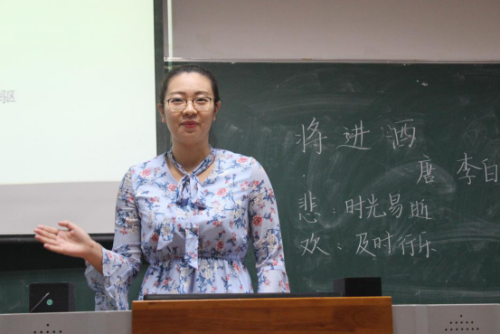 A赛场里,李佳诺同学讲授《将进酒》,她教态得体,板书精美,语言富有感染力,获得了两位老师的一致赞赏。王誉同学从字词分析讲授古诗《闻王昌龄左迁龙标遥有此寄》,并且充分发挥了自己的朗诵优势,将字词鉴赏与诵读相结合的教学方法发挥得淋漓尽致,赢得了全场最高分。石倩倩同学讲授《愚公移山》,以问题导读的方法开始授课,问题设计环环相扣,独具匠心的板书设计让人眼前一亮。