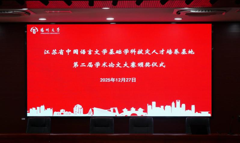为赓续严谨求实的治学风范,推动中国语言文学基础学科拔尖人才培养平台间的交流互鉴,12月27日下午,江苏省中国语言文学基础学科拔尖人才培养基地第二届学术论文大赛颁奖仪式在扬州大学瘦西湖校区中敏报告厅圆满举行。本次活动由南京师范大学、苏州大学、江苏师范大学与扬州大学四所高校联合主办。